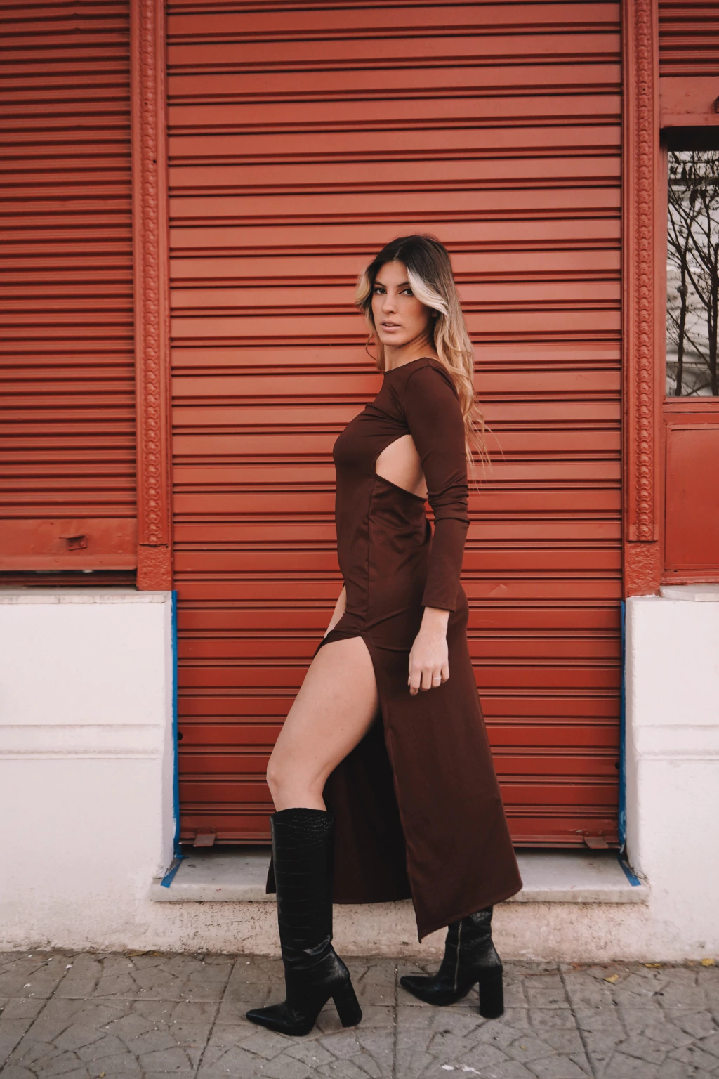 Elegante y sensual, este vestido largo destaca por su espalda descubierta y su caída fluida. Perfecto para eventos especiales, combina sofisticación y estilo en cada detalle.